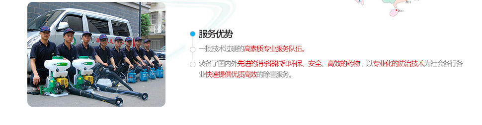 南京清波殺蟲技術服務有限公司是一家專業從事;有害生物防治、蟲害控制管理、衛生防疫消毒、環境綠化工程與養護服務、清潔服務、殺蟲藥品和器械銷售及售后服務。   我們的服務項目:消滅老鼠、蟑螂、蚊子、蒼蠅、白蟻、跳蚤、臭蟲等衛生蟲害的防制工作及環境消毒。特別是在殺滅德國小蠊及老鼠防治方面有著無可比擬的技術優勢。   我們的服務對象:賓館、酒店、超市、商場、商業大樓、餐廳、食品加工廠、醫院、各類廠區、集裝箱、船泊、鐵路車廂、娛樂場所、學校、銀行、航空及公共外環境等病媒蟲害綜合防制業務。   我們的優勢:   1、專業:我公司擁有一支設備先進及專業的技術人員組成的消殺隊伍。具有豐富的理論知...